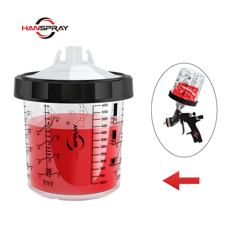 बिक्री पेंट गन एडाप्टर 650 एमएल 125mic ऑटोमोटिव मिश्रण कप और बाहरी के साथ